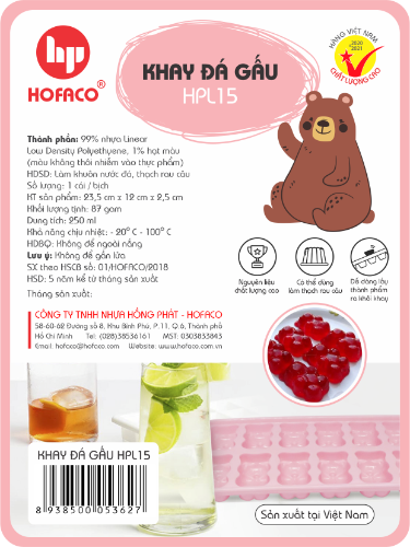 KHAY ĐÁ GẤU - HPL15 sẽ là điểm nhấn cho không gian sống của nhà bạn, giúp bạn dễ dàng tạo ra những viên đá hình chú gấu ngộ nghĩnh, làm khuôn tạo hình trang trí cho món thạch rau câu và bánh tại nhà.