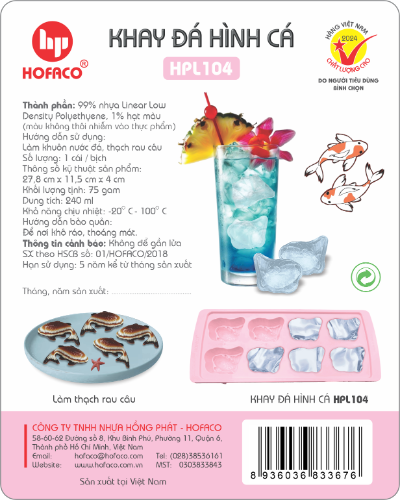 KHAY ĐÁ HÌNH CÁ - HPL104 sẽ là điểm nhấn cho không gian sống của nhà bạn, giúp bạn dễ dàng tạo ra những viên đá tại nhà, tạo hình trang trí cho món rau câu và bánh, hoặc trữ thức ăn dặm cho trẻ nhỏ.