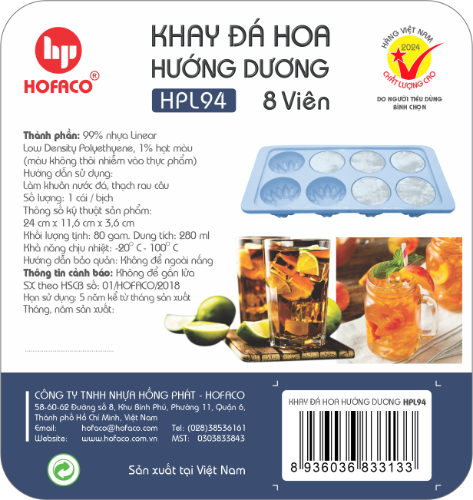 KHAY ĐÁ HOA HƯỚNG DƯƠNG - HPL94 sẽ là điểm nhấn cho không gian sống của nhà bạn, giúp bạn dễ dàng tạo ra những viên nước đá tại nhà, tạo hình trang trí cho món rau câu và bánh, hoặc trữ thức ăn dặm cho trẻ nhỏ.