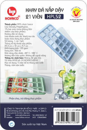 KHAY ĐÁ NẶP ĐẬY 21 VIÊN - HPL 52 sẽ là điểm nhấn cho không gian sống của nhà bạn, giúp bạn dễ dàng tạo ra những viên đá tại nhà hoặc trữ thức ăn dặm cho trẻ nhỏ.