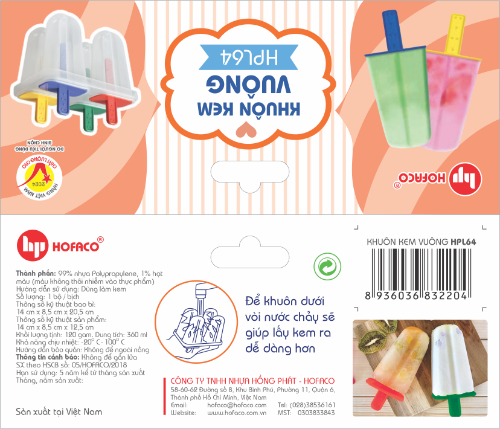 KHUÔN KEM VUÔNG - HPL64 nhỏ gọn, tiện lợi và rất an toàn cho sức khỏe vì được làm từ 100% nguyên liệu nhựa nguyên sinh cao cấp không thấm màu qua thực phẩm giúp bạn yên tâm làm kem ngon. Sản phẩm giúp bạn dễ dàng tự tạo ra những món kem ngon và đầy màu sắc tại nhà để cùng thưởng thức với những người thân yêu.