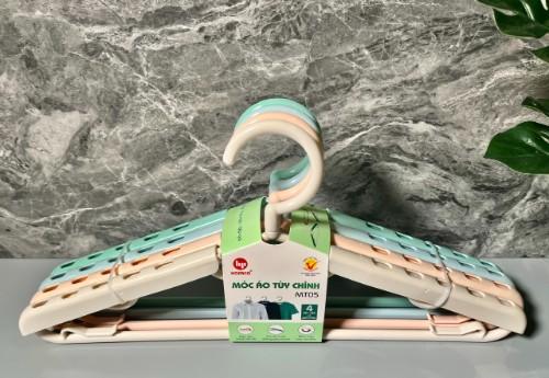 MÓC ÁO TÙY CHỈNH - MT05 được sản xuất từ chất liệu nhựa bền tốt, hạn chế phai màu, bền bỉ khi dùng lâu dài, treo móc quần áo nhanh gọn. MÓC ÁO TÙY CHỈNH - MT05 màu sắc tươi sáng, kiểu dáng đẹp mắt, phù hợp phơi áo quần, khăn tắm,... tiện lợi, gọn gàng và tiết kiệm không gian nhà bạn, là sự lựa chọn của nhiều người.