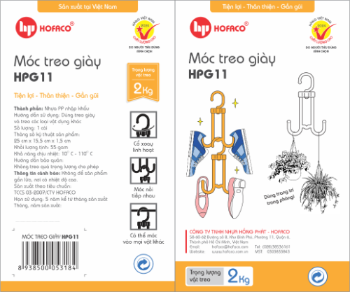 MÓC TREO GIÀY - HPG 11 được làm từ chất liệu nhựa nhập khẩu cao cấp, chắc chắn, an toàn và khả năng chịu lực tốt. MÓC TREO GIÀY - HPG 11 Hofaco tiện dụng, dễ dàng di chuyển, tiết kiệm không gian, có thể xoay vòng và móc lên mọi vật khác. Phần móc chắc chắn, uốn cong thẩm mỹ cao, dễ dàng móc vào giá đỡ, giúp các vật dụng luôn suôn thẳng mà không bị hư hỏng, giúp nâng niu những đôi giày yêu quý của bạn. Thiết kế nhỏ gọn giúp không gian nhà bạn trở nên sinh động hơn, cho nhà cửa gọn gàng, tươm tất hơn.