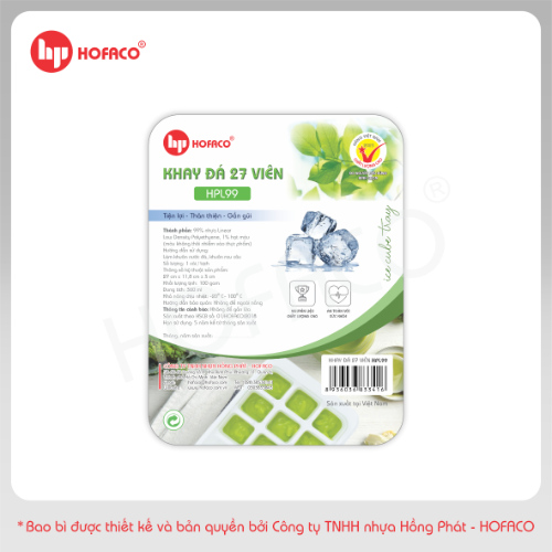 KHAY ĐÁ 27 VIÊN - HPL99 sẽ là điểm nhấn cho không gian sống của nhà bạn, giúp bạn dễ dàng tạo ra những viên đá tại nhà, tạo hình trang trí cho món rau câu và bánh, hoặc trữ thức ăn dặm cho trẻ nhỏ. Sản phẩm làm từ 100% nhựa nguyên sinh an toàn cho sức khỏe, luôn được các bà nội trợ tin dùng.
