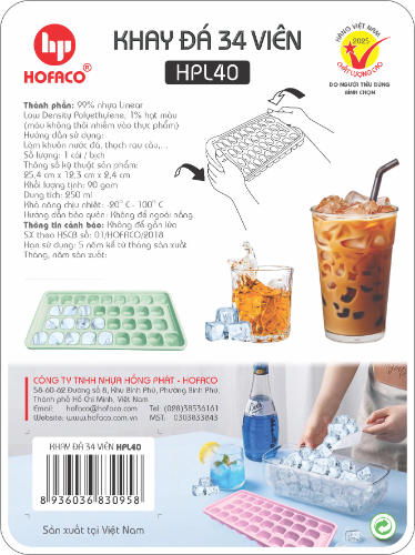 KHAY ĐÁ 34 VIÊN - HPL40 sẽ là điểm nhấn cho không gian sống của nhà bạn, giúp bạn dễ dàng tạo ra những viên đá tại nhà, làm khuôn thạch rau câu hoặc trữ thức ăn dặm cho trẻ nhỏ.