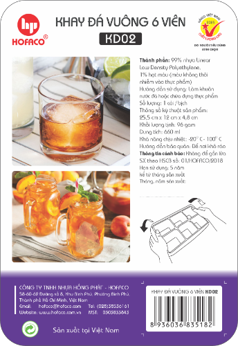 KHAY ĐÁ VUÔNG 6 VIÊN - KD02