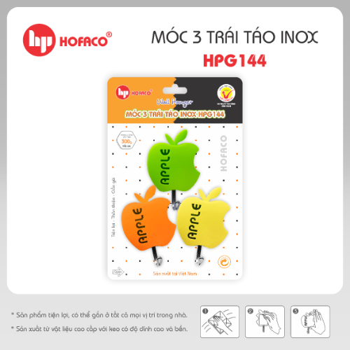 MÓC 3 TRÁI TÁO INOX - HPG144 là một sản phẩm tiện lợi có tính ứng dụng cao với kiểu dáng độc đáo, màu sắc trẻ trung. Sản phẩm được sản xuất từ nguyên liệu là hạt nhựa nguyên sinh nhập khẩu cao cấp kết hợp với lớp keo dán có độ bám dính cao và bền. Bạn có thể dễ dàng gắn sản phẩm ở tất cả mọi vị trí trong nhà.
