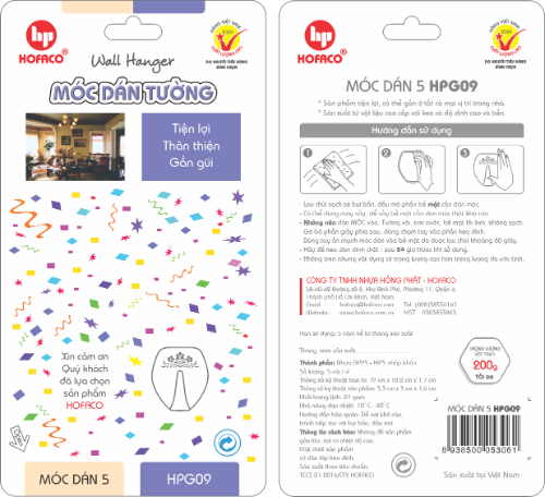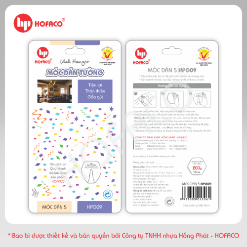 MÓC DÁN 5 - HPG09 là một sản phẩm tiện lợi có tính ứng dụng cao, với phong cách thiết kế tối giản dễ dàng phù hợp ở tất cả mọi không gian. Sản phẩm được sản xuất từ nguyên liệu là hạt nhựa nguyên sinh nhập khẩu cao cấp với lớp keo dán có độ dính cao và bền. Bạn có thể dễ dàng gắn sản phẩm ở tất cả mọi vị trí trong nhà.