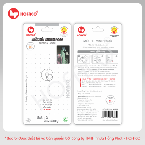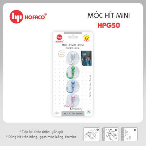MÓC HÍT MINI - HPG50 là một sản phẩm tiện lợi có tính ứng dụng cao, với phong cách thiết kế tối giản dễ dàng phù hợp ở tất cả mọi không gian. Sản phẩm được sản xuất từ nguyên liệu là hạt nhựa nguyên sinh nhập khẩu cao cấp với phần chụp hít PVC có độ hít cao và bền, có thể tái sử dụng nhiều lần trên các bề mặt láng bóng như mặt kính. Bạn có thể dễ dàng lắp đặt sản phẩm mà không lo làm tổn hại phần bề mặt cần lắp đặt.